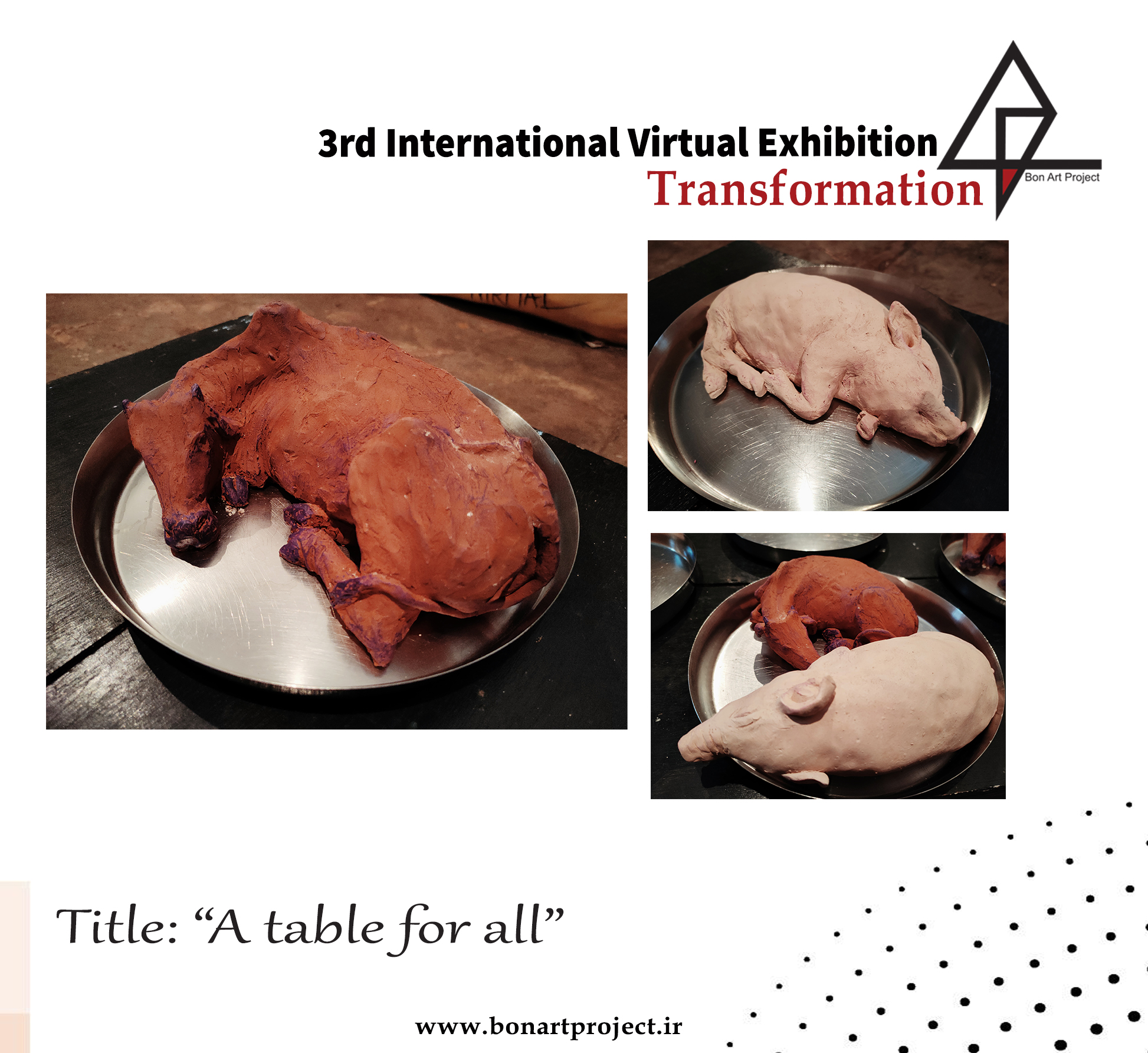 Statement:Here in this work different kind of meat or animals transformed into a representation of a particular community and their food cultures. I took some particular animals like pig and cow, cause these are the meat which are forbidden in different cultures in Hindu culture they worship the cow, so they don't eat them, in Ishlam pork is forbidden to eat, in the other hand Cristian culture can take the both, and there are some where they are completely vegetarian. So food transformed into a barrier of different cultures, so in my work I wanted to take all of them on a single table as a representation of humanity.
